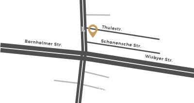 Wir sind nur wenige Minuten von der U-Bahn Schönhauser Allee und Vinetastraße entfernt. Auch die Straßenbahnhaltestelle ist gleich um die Ecke.